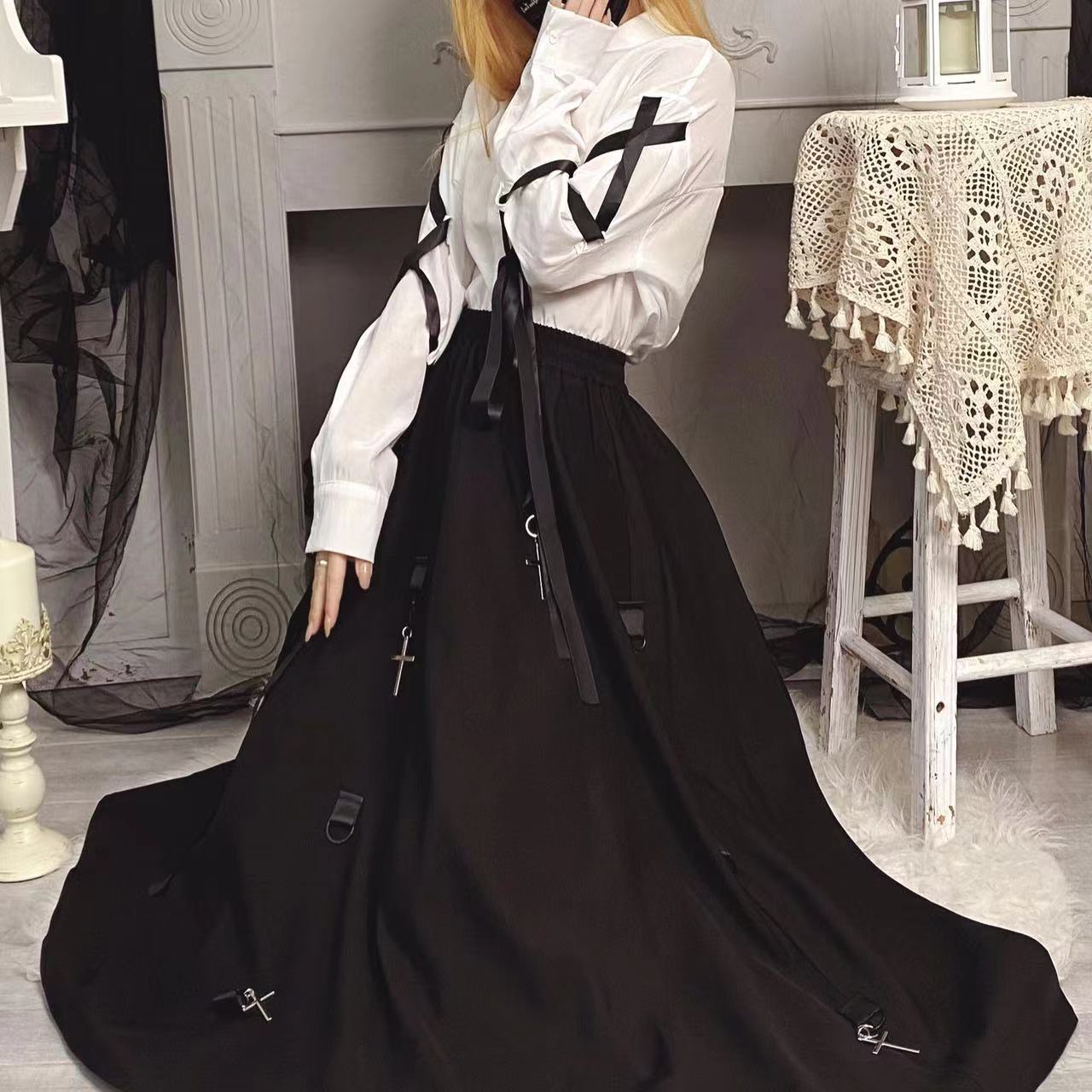 シアースリーブ ドッキングシャツ ボウタイシャツブラウス
