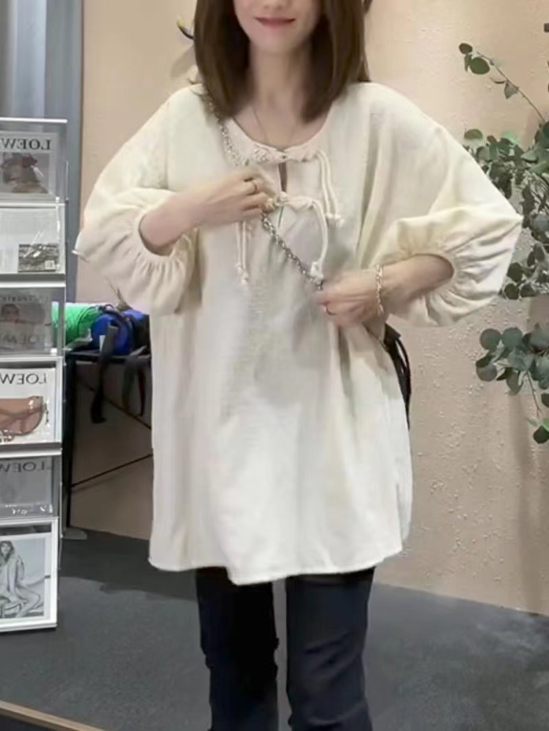 シアースリーブ ドッキングシャツ ボウタイシャツブラウス