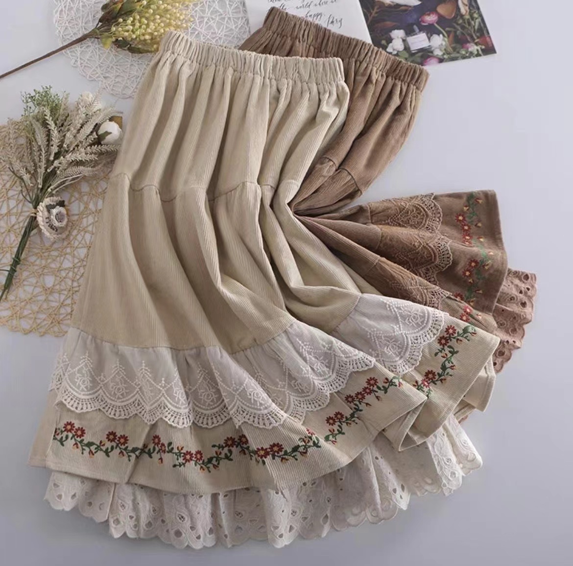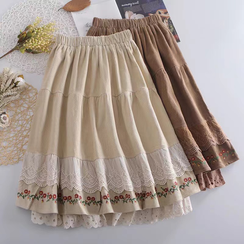 スカート 森ガール 刺繍ペチコート 大