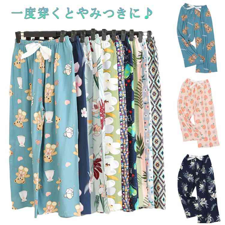 サラサラ涼しくて快適♪ 夏物ルームウェア 花柄 イージーパンツ 寝間着 ワンマイルウェア ゆったり ゆるパンツ ウェストゴム プチギフト