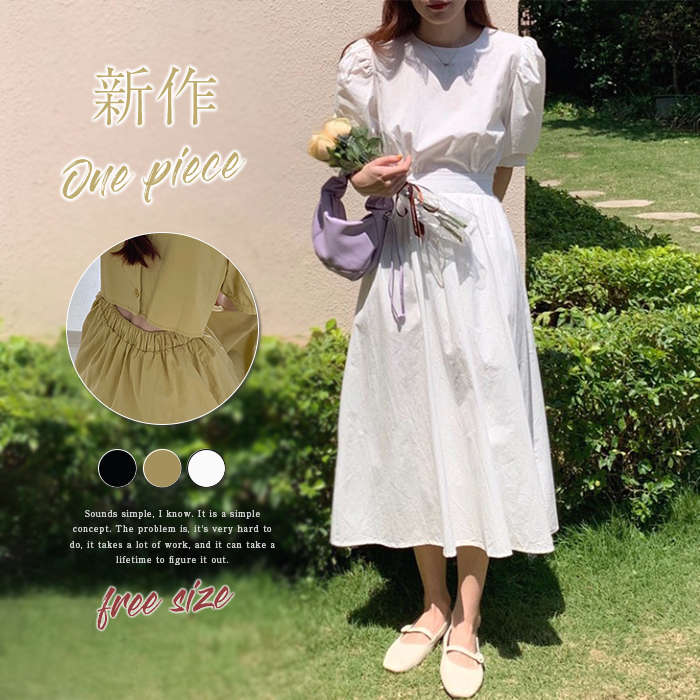 レディース ラインワンピース シンプル ウエストマークワンピース きれいめ オフィスカジュアル 体型カバー フェミニン ボリューム袖ワンピ ロングシャツ長袖秋 膝丈ワンピース大人