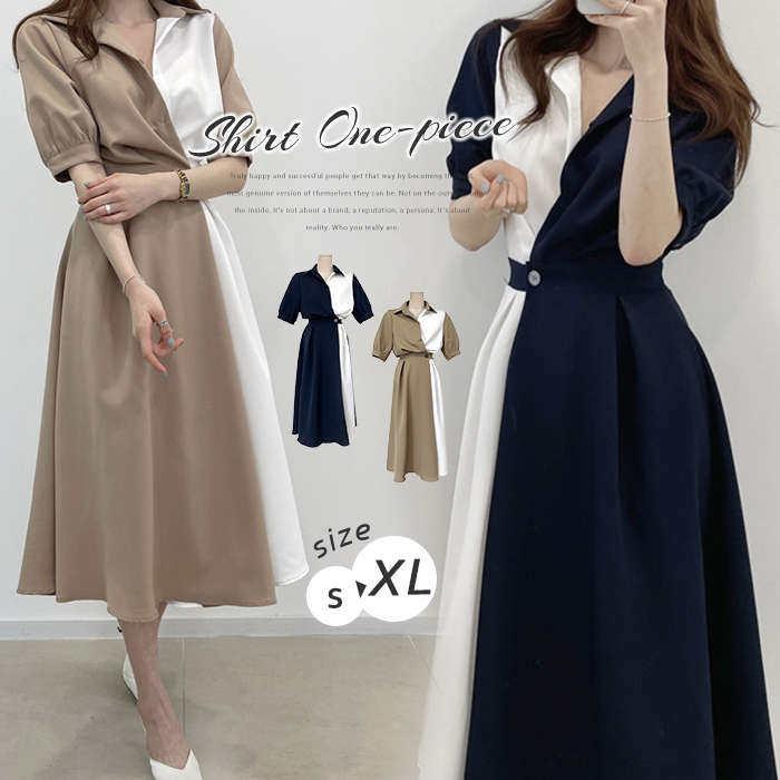 Shirt One-piece オフィスカジュアル ミモレ丈 シャツワンピー ♪レディースファッション シャツワンピース