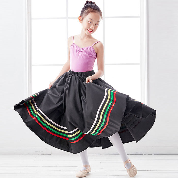 バレエ キャラクタースカート ジュニア レディース バレエ キャラクター ダンス スカート リハーサル スカート ブラック バレエスカート ロング丈 社交ダンス ウエストゴム ブラック