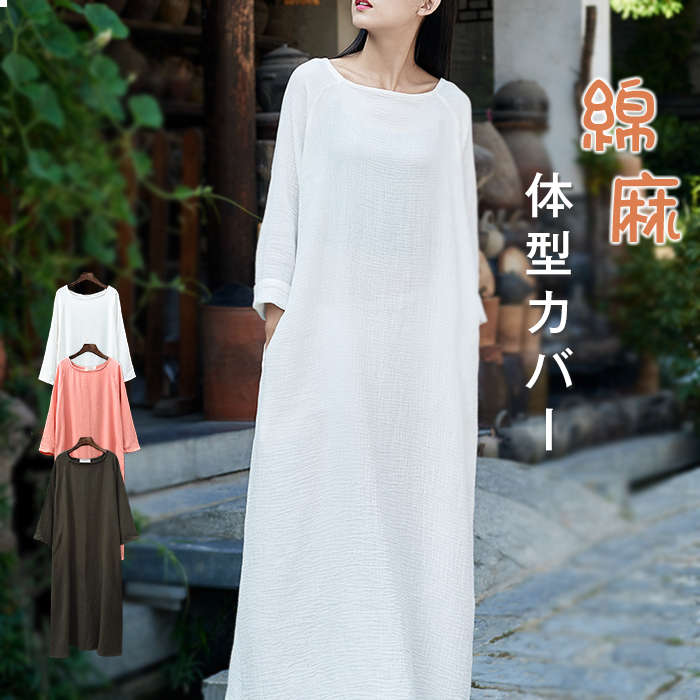レディースファッション Dolman onepiece 1枚で着れる リネンワンピース Maxi dress ♪
