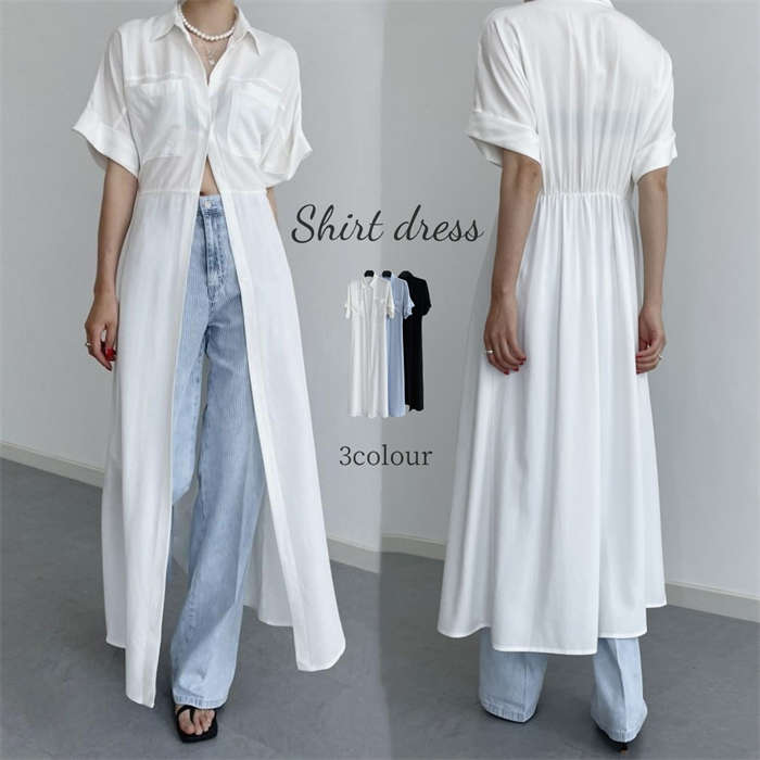 Shirt one-piece 簡単にコーデ完成 韓国風 シャツワンピー ♪レディースファッション シャツワンピース