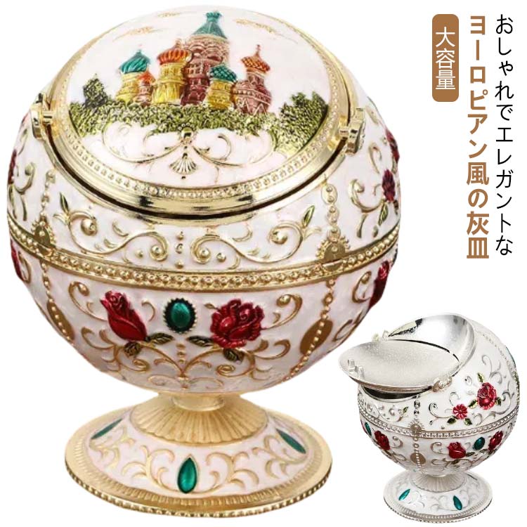 レトロ 薔薇の模様のふた付き エレガント アシュトレイ バラ 卓上サイズ インテリア フラワー 球体 おしゃれ