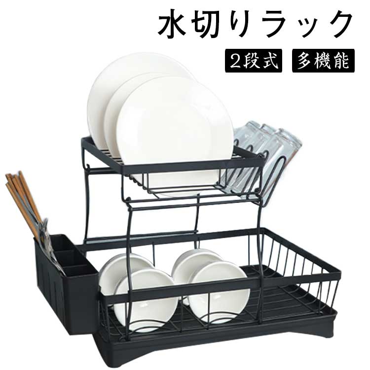 シンク キッチン 2段 スリム 水切りラック 水切りかご 食器 食器棚 シンクサイド 伸縮 水切りラック 包丁立て キッチン収納 シンク上