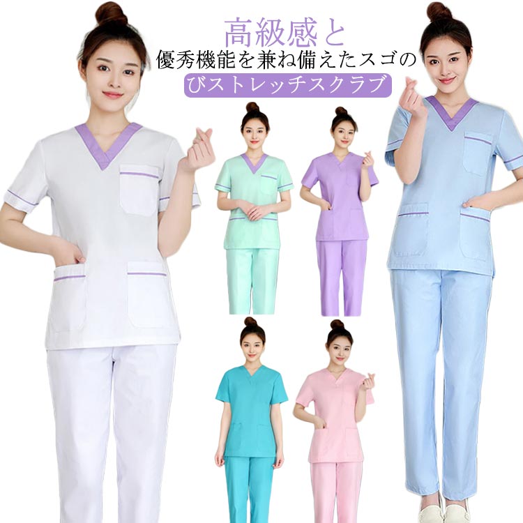 白衣 上下セット 女性 看護師 スクラブ 白衣 介護服 レディース パンツ 医師 スクラブ 女性用 ナース服 大きいサイズ スクラブセット 医療 ナース ストレートパンツ 介護士 介護施設 おしゃれ