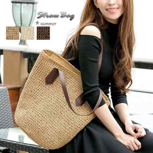 大人かわいい ストローバッグ レジャー シンプル 麦わらバッグ A4 バスケットバッグ 軽量 肩掛けかばん リゾート夏鞄 トートバッグ大容量 夏バッグ 涼しい ナチュラルバッグ