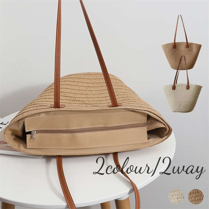 かごバッグ トート ショルダー レディース ファスナー 夏 バッグ 夏バッグ 肩掛け サマーバッグ トートバッグ カゴバッグ ハンドバッグ おしゃれ 浴衣 持ち手付き ナチュラル 大人 大きめ 女性