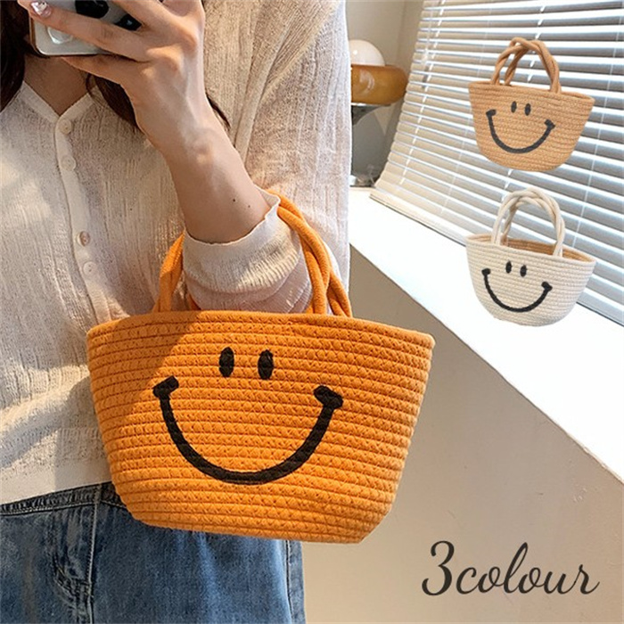 ファッション小物 気分転換~ スマイル かごバッグ Summer bag プレゼント 贈り物 ギフト 母の日 アイボリー イエロー ベージュ 白 黄 春夏 ♪