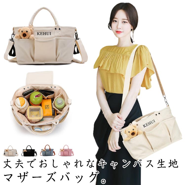 バッグ マザーズバッグ 帆布 トートバッグ キャンバス 軽量 帆布 保温 保冷ポケット ボトルポケット ママバック 無地