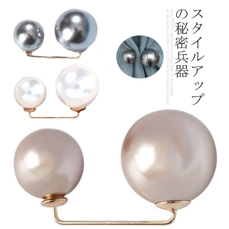 パール風ブローチ ファッション両頭パール セーターショールクリップ フェイクパール ダブルカフスブローチピン 安全ピン クラシック