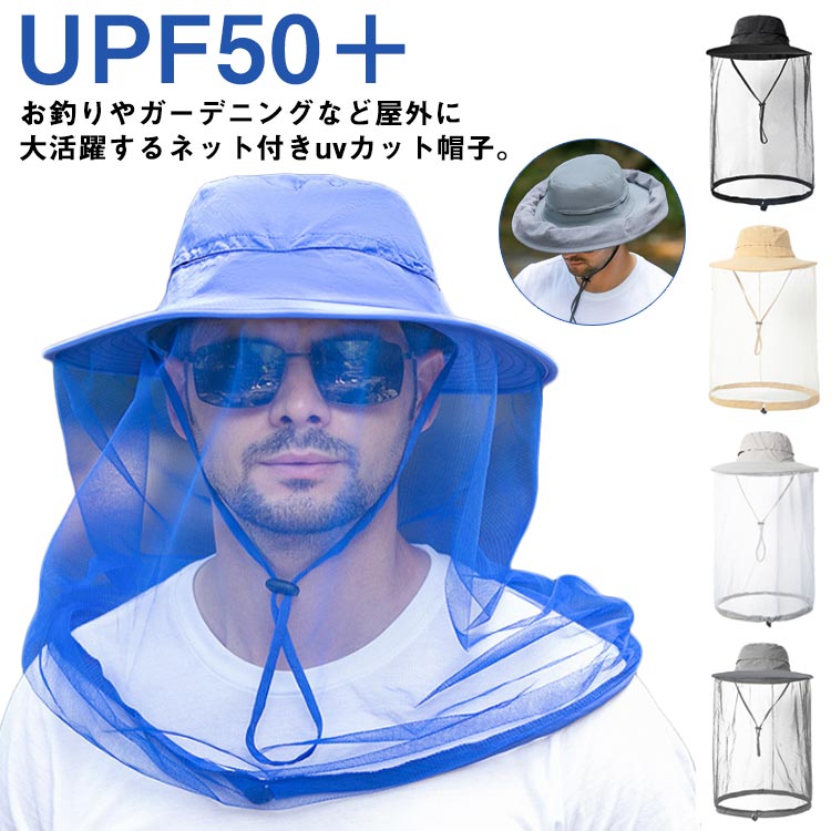 UPF50+ 嫌な蚊や虫から守る ネット ハット 日よけ 虫よけ 帽子 キャップ あご紐付き 通気 園芸 農作業 防虫 父の日 ギフト プレゼント