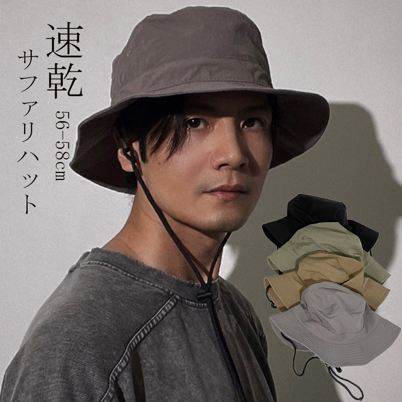 速乾メンズサファリハット ユニセックス レディース UVカット オシャレ 男女兼用 あご紐付き 旅 自転車 山登り 通気性良い 父の日 ギフト