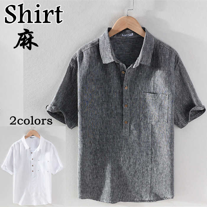 亜麻 半袖シャツ ヘンリーネック カジュアル 男性用 トップス 夏服 2色 白色 灰色メンズファッション トップス シャツ カットソー