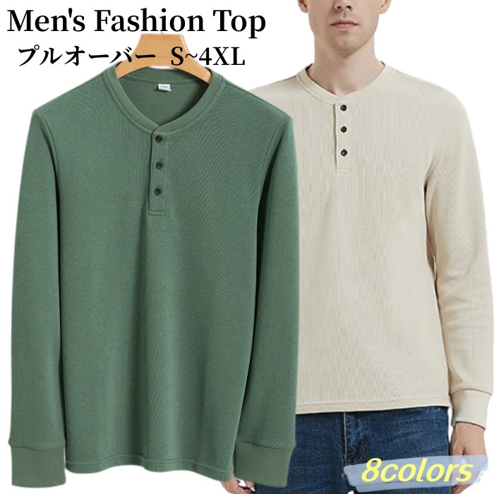 プルオーバー 綿素材 長袖シャツ クルーネック 男性用 トップス 春 夏 秋服 ベージュ 8色メンズファッション トップス シャツ カットソー