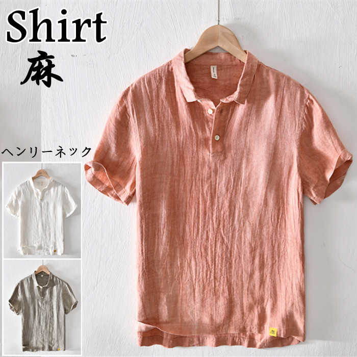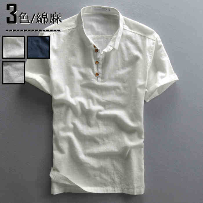 亜麻 半袖シャツ ヘンリーネック カジュアル ポロシャツ 男性用 トップス 夏服 3色 白色メンズファッション トップス シャツ カットソー