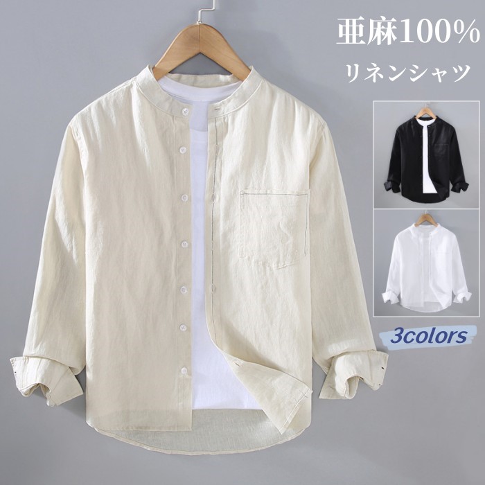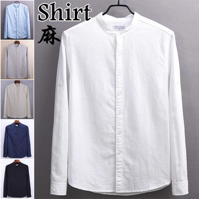 綿麻 長袖シャツ 立ち襟 カジュアル 男性用 トップス 春服 3色 白色 灰色メンズファッション トップス カジュアルシャツ