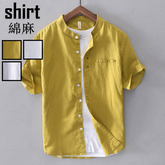 綿麻 半袖シャツ 立ち襟 カジュアル 男性用 トップス 夏物 3色メンズファッション トップス カジュアルシャツ
