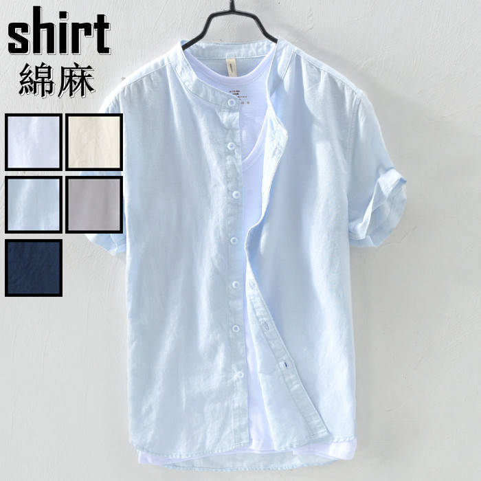 綿麻 半袖シャツ 立ち襟 カジュアル 男性用 トップス 夏物 5色メンズファッション トップス カジュアルシャツ
