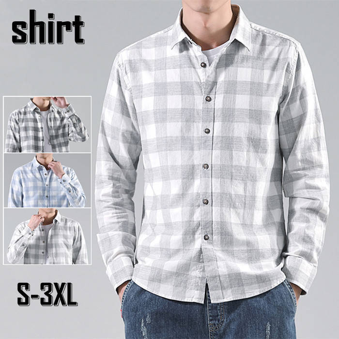 シャツ 長袖シャツ メンズ チェック柄 カジュアルシャツ スリム コットン100% トップス -3 春服 秋物 シャツジャケット 新品 カーディガン