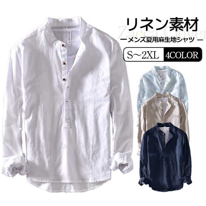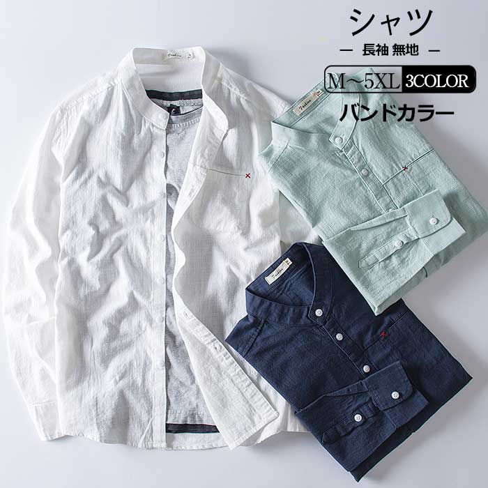 カジュアルシャツ 長袖 バンドカラー 4 5メンズファッション トップス カジュアルシャツ
