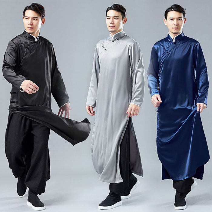 チャイナ服 メンズ 男性 長袍 チャンパオ チャイナ風 中華服 中国 メンズ用 カジュアル 服 ロング丈 シャツ ジャケット 上着 中国伝統服 メンズ チャイナ服 サテン光沢 フォマール ブラック 黒