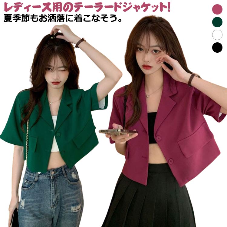 テーラードジャケット レディース スーツ 無地 半袖 ショート丈 トップス オフィス アウター 着痩せ フォーマル ゆったり 韓国風 きれいめ おしゃれ