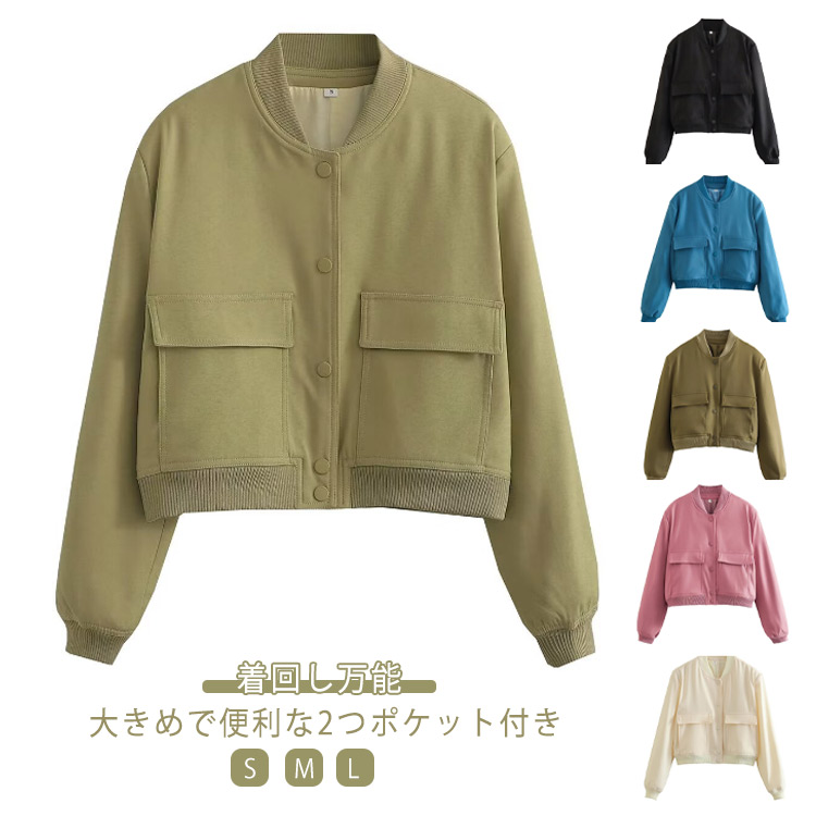 ライトアウター ボタン ドロップショルダー 羽織り ブルゾン アウター シンプル 春 レディース
