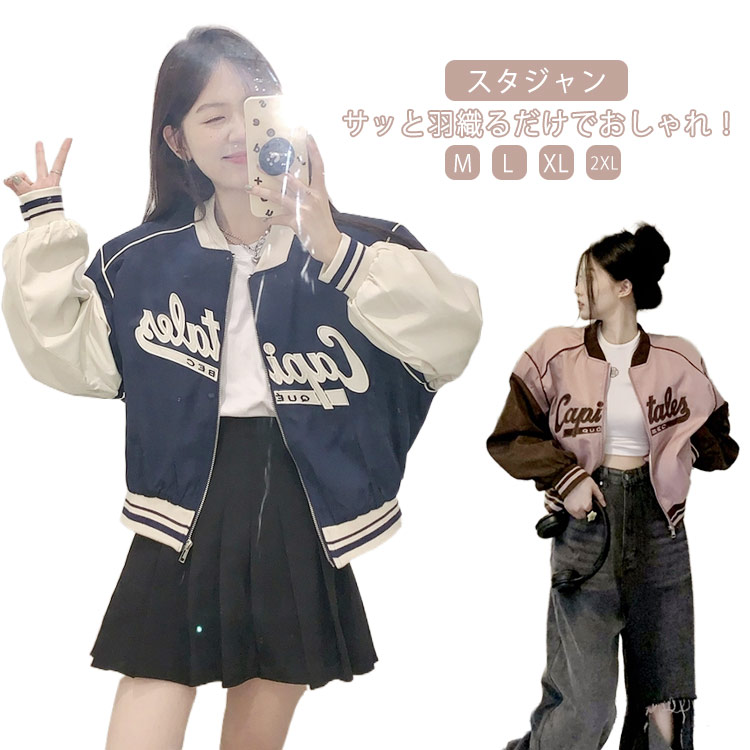 ボタン付き 長袖 立ち襟 厚手 トップス カジュアル 前開き ポケット付き ストリート系 出掛け 秋冬 普段着 通学 ジャンパー スタジアムジャンパー
