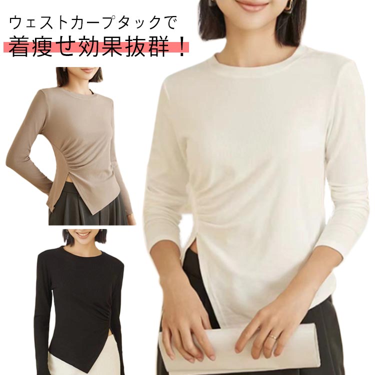 カットソー Tシャツ 細見え 長袖トップス おしゃれ インナー 韓国ファッション ウェストシェイプアップ