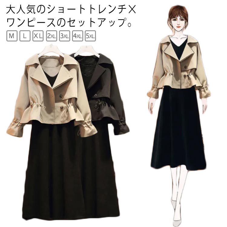 スプリングコート ショート丈 セットアップ ジャケット ワンピース アウター お洒落 韓国 アウター ジャケット スプリング ショートトレンチ ロングワンピース
