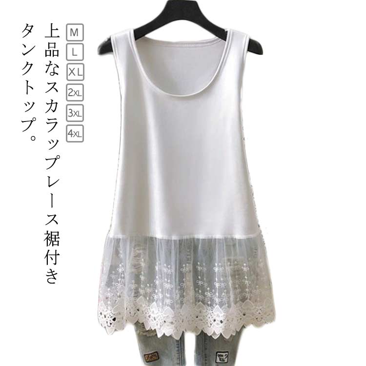 花レース 透け感 透け感 ロングタンクトップ 重ね着 スカラップ タンクトップ キャミソール レイヤードTシャツ レイヤードトップス つけ裾