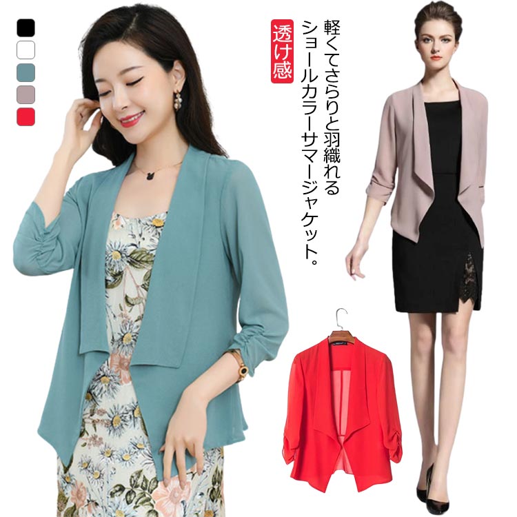 ブラウス感覚で着られる シフォンサマージャケット 7分袖 冷房対策 紫外線対策 ケア カーデレディースファッション コート ジャケット