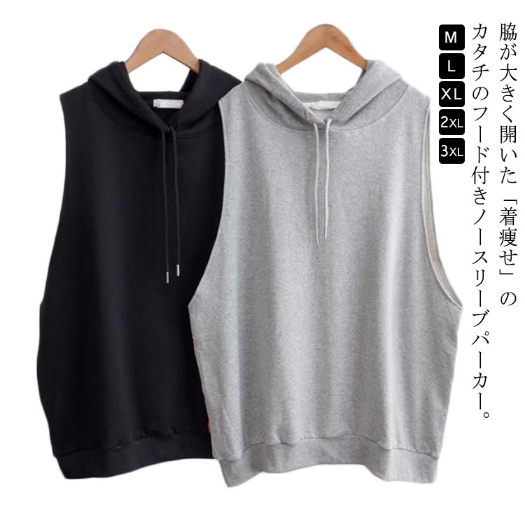 ノースリーブパーカー プルオーバーパーカー フード付き ベストレディースファッション トップス ベスト ジレ