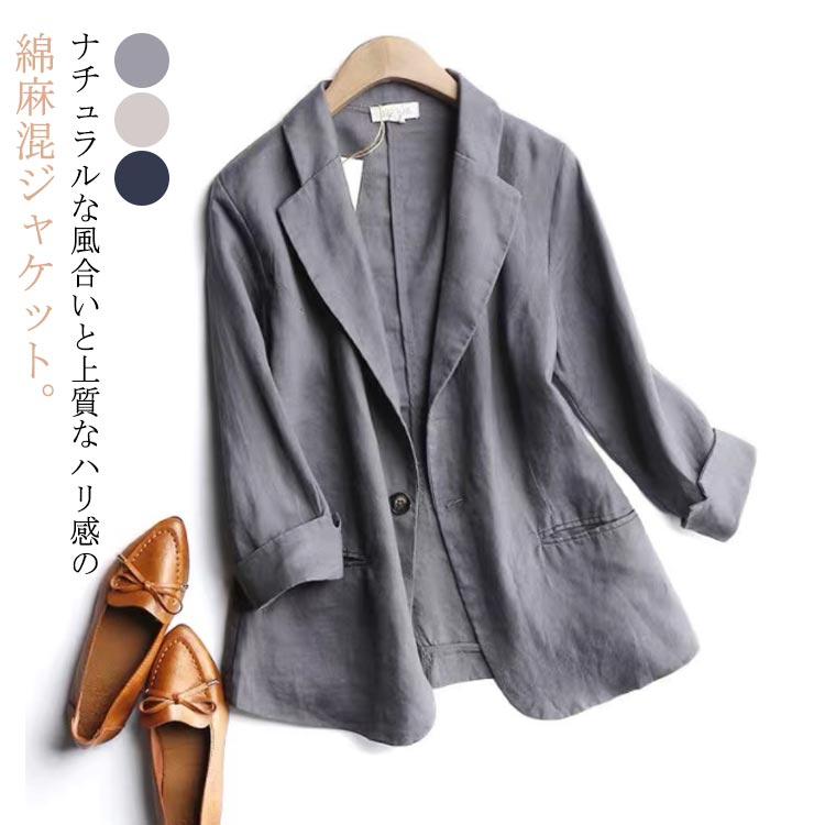 リネン ジャケット コットン ジャケット ワンボタン 夏 スーツ サマージャケット 薄手 ハリ感の綿麻混ジャケット