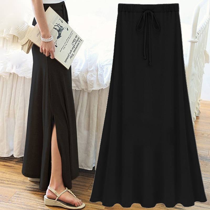 スカート ボトムス レディース フレアスカート ロングスカート ロング ライン ストリート スリット サイドスリット ポケット ハイウエスト ウエストゴム ドロスト アメカジ 薄手