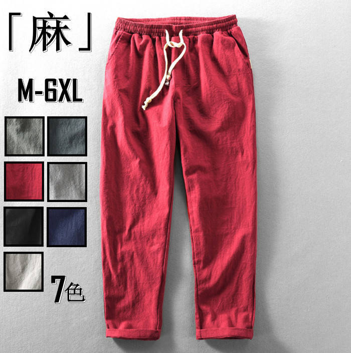 パンツ リネンパンツ ジョガーパンツ 綿麻 メンズ カジュアルパンツ 原宿系 麻 無地 薄手 涼しい ワイドパンツ ロングパンツ -6 大きいサイズ イージーパンツ 夏物 ボトムス