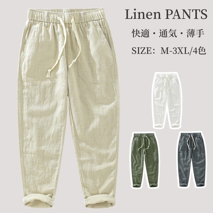 リネンパンツ ウエストゴム 通気性 快適 涼しい 部屋着 春夏秋服 全9色メンズファッション ズボン パンツ
