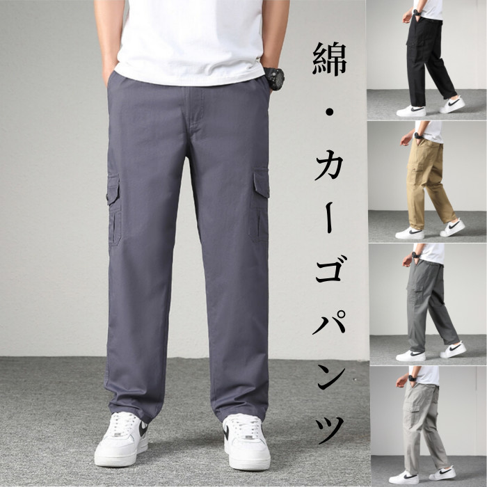 メンズパンツ 綿100% カーゴパンツ ストレートパンツ カジュアルパンツ 快適 通気性 ロングパンツ 無地 ワークパンツ ミリタリーパンツ イージーパンツ ゆったり 作業着 普段着 薄地 通気 涼し
