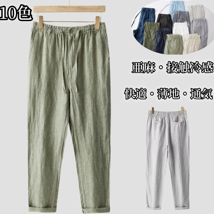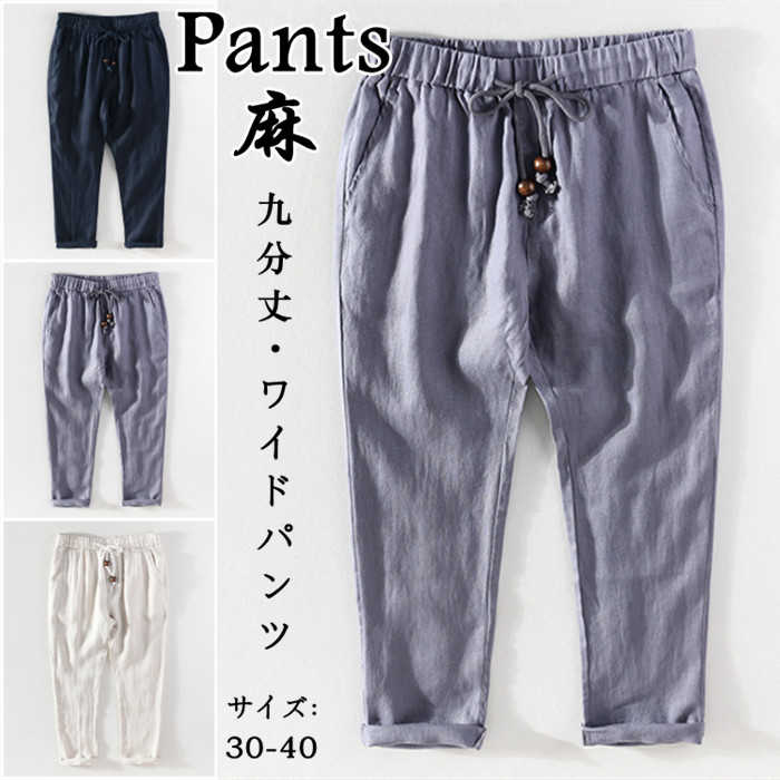 九分丈 綿麻 ワイドパンツ カジュアル 男性用 ボトムス 夏物 9色メンズファッション ズボン パンツ
