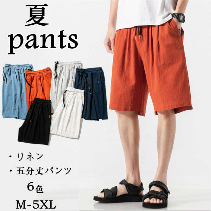 男性用 メンズ リネンパンツ 五分丈パンツ ショートパンツ チノパン 夏 6色 黒 灰 白メンズファッション ズボン パンツ