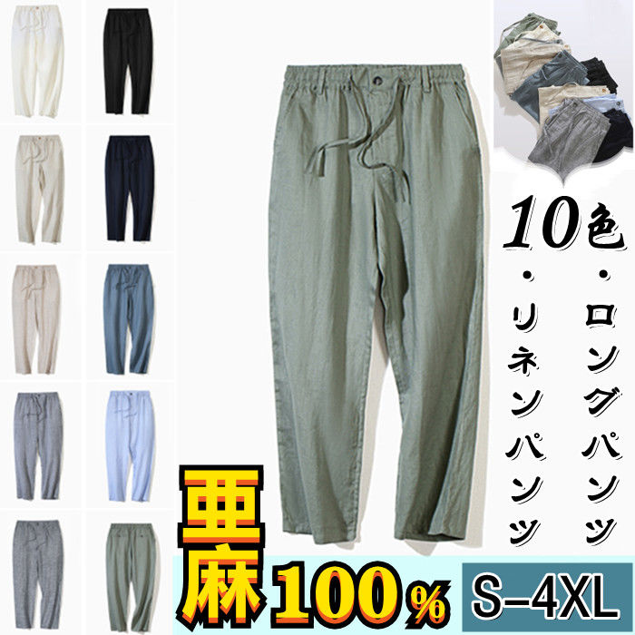 春夏新作 男性用 ワイドパンツ リネンパンツ 亜麻 ストレートパンツ 10 白色 灰色 黒色 緑色