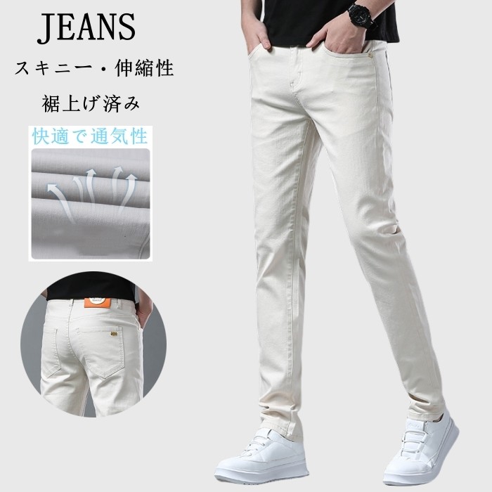 春 夏 秋 新作 美脚 ジーンズ 伸縮性 デニムパンツ 男性用 ロングパンツ 裾上げ済み 普段着 ベージュ