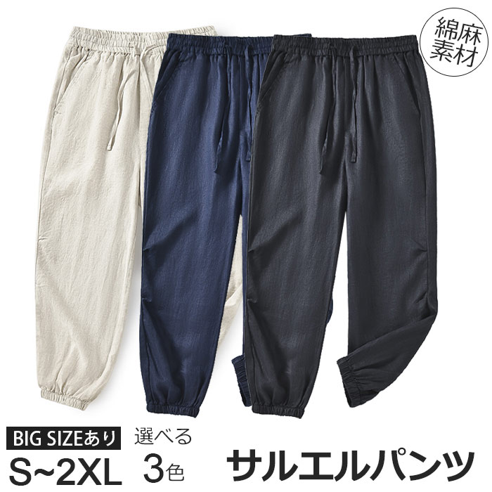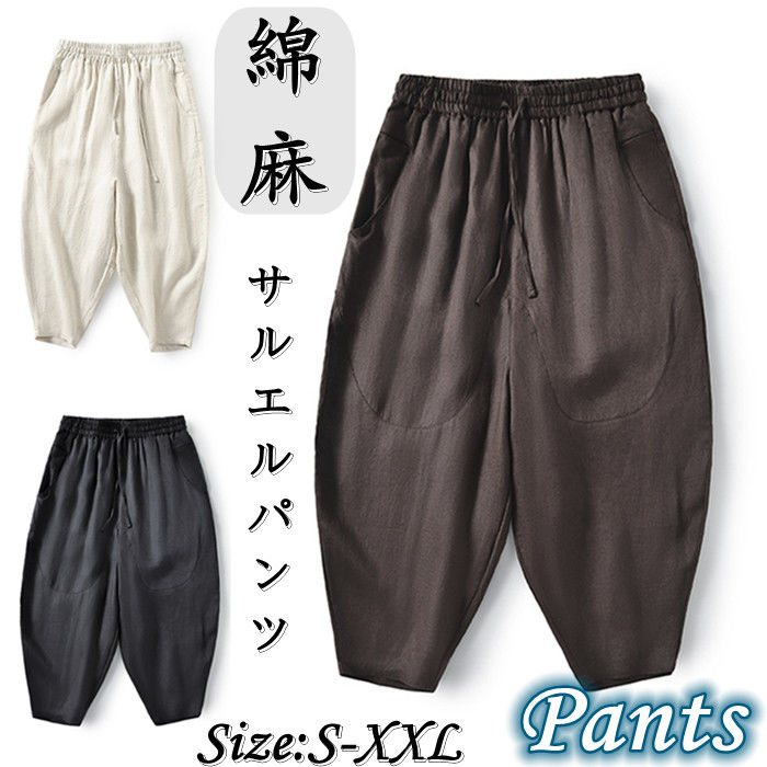綿麻 九分丈 サルエルパンツ ハロンパンツ 男性用 ボトムス 夏物 3色 黒色メンズファッション ズボン パンツ