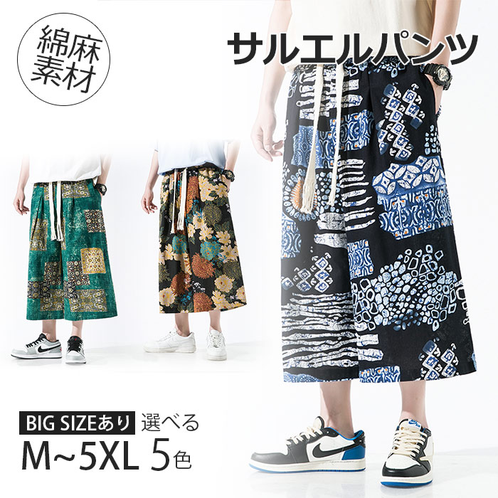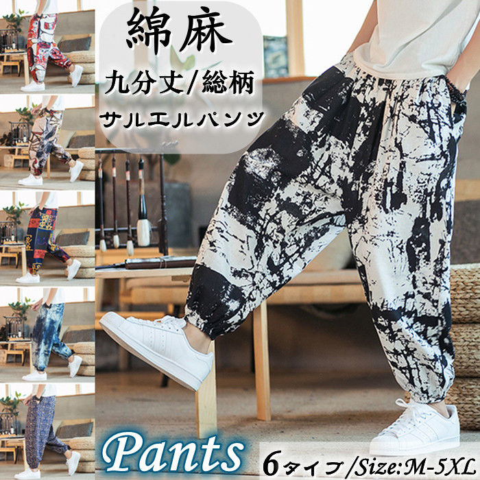 綿麻 総柄 九分丈 サルエルパンツ ハロンパンツ 男性用 ボトムス 春 夏物 6タイプメンズファッション ズボン パンツ