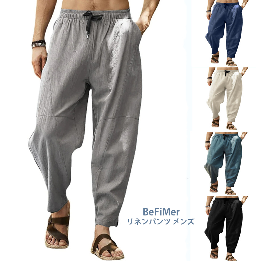 リネンパンツ メンズ ロングパンツ ゆったり リネンパンツ 夏の薄手 イススラックス メンズ 2023
