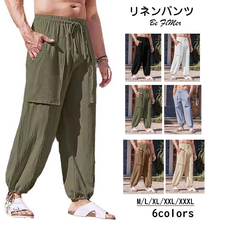 おしゃれ リラックスパンツ ファッション 人気 イージーパンツ 民族風 メンズ リネンパンツ 男性用 ボトムス 通勤 通学 旅行 普段着 部屋着 普段着