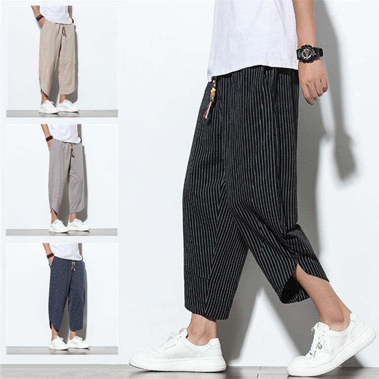 七分丈パンツ メンズ ゆったり 涼しい ロングパンツ ストライプ柄 ボトムス パンツ 夏メンズファッション ズボン パンツ